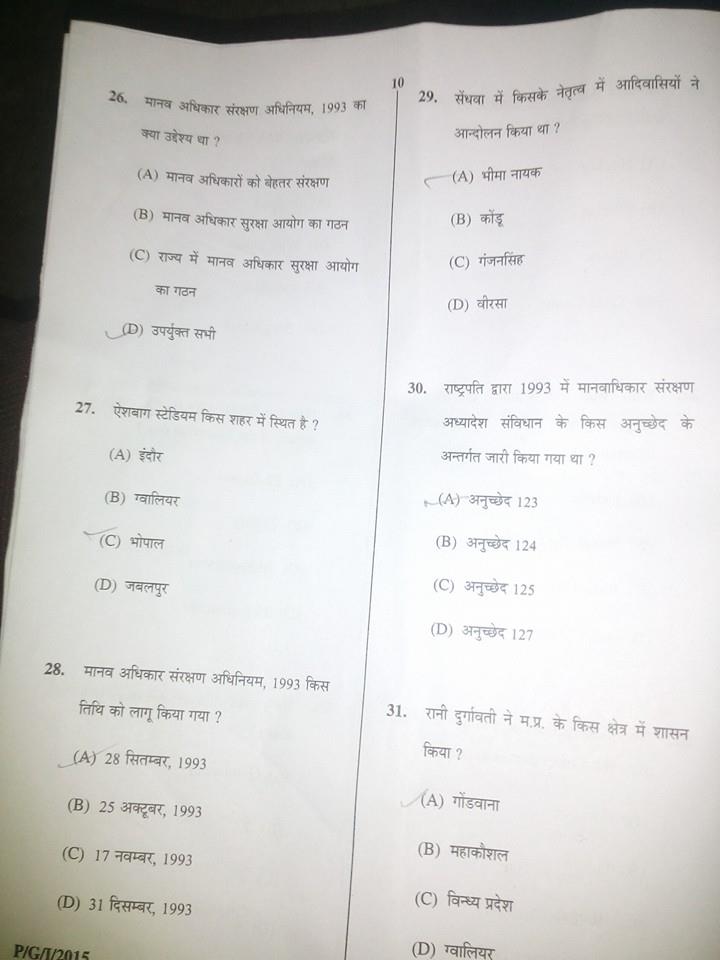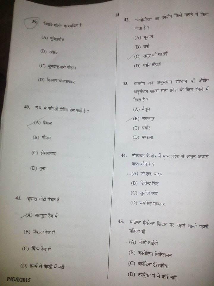 MPPSC Prelims 2016 – Question Paper with solution (Hindi medium)